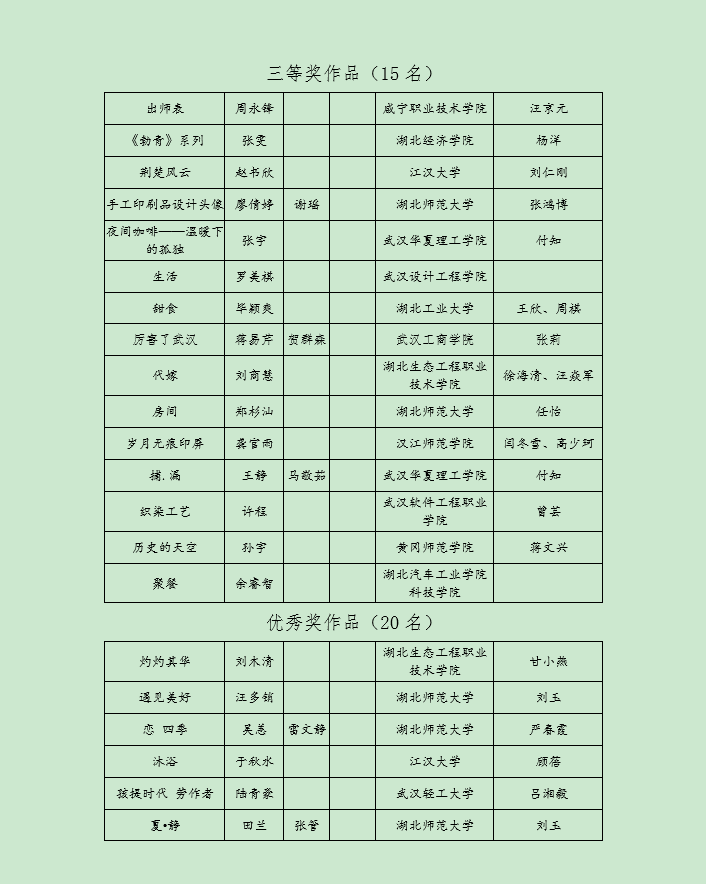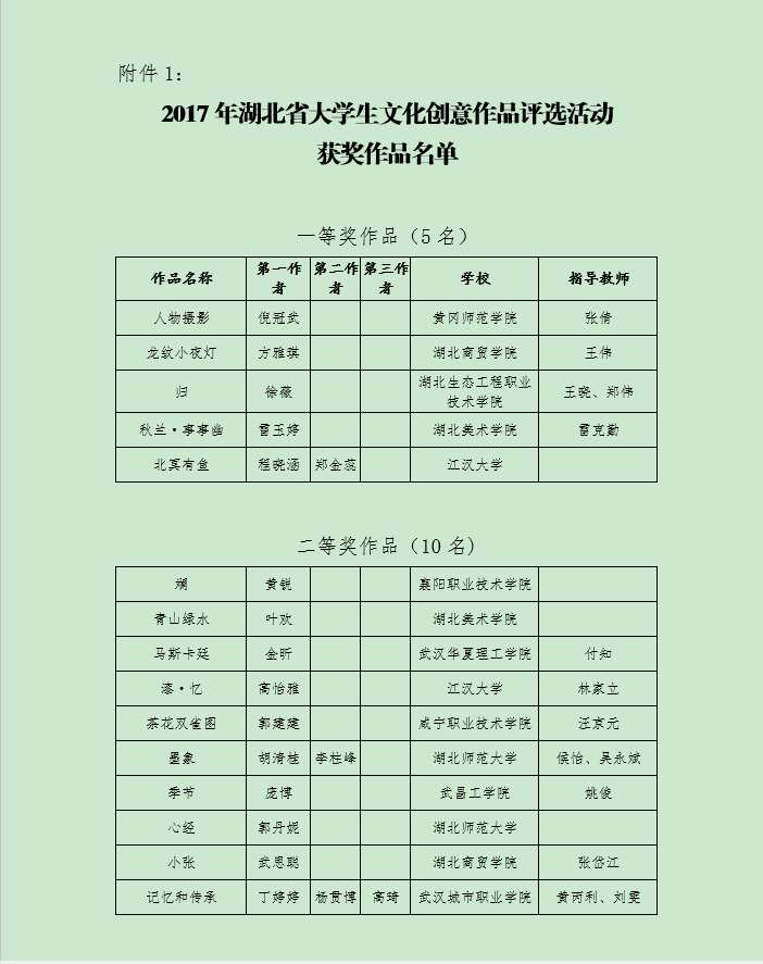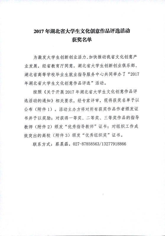 2017年湖北省大學生文化創意作品評選活動獲獎名單